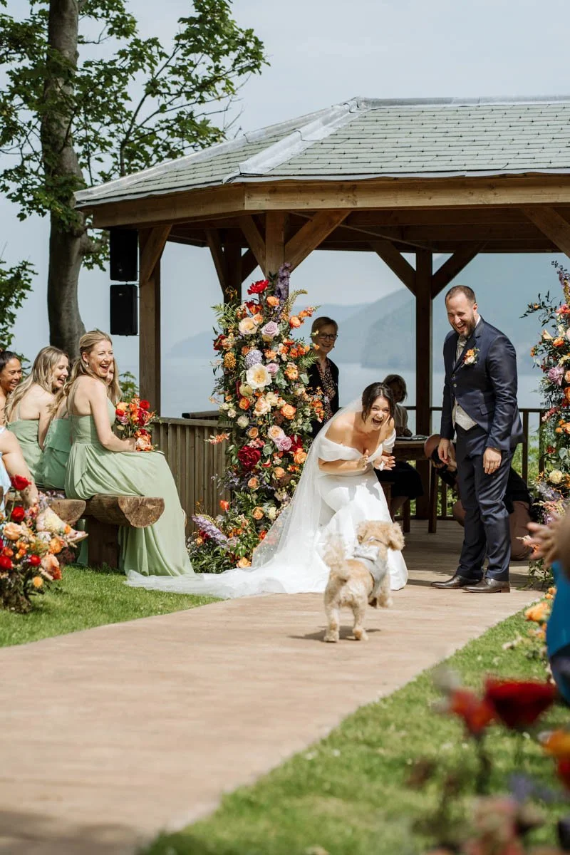 Their beautiful dog (and very important ring bearer) absolutely stole the show. He trotted down the aisle like a seasoned professional, smiles from every guest. I don’t think I’ve ever seen two prouder dog parents. He may have added a few perfectly timed comedic moments during the ring exchange and first kiss — but honestly, it only made the ceremony even more memorable.