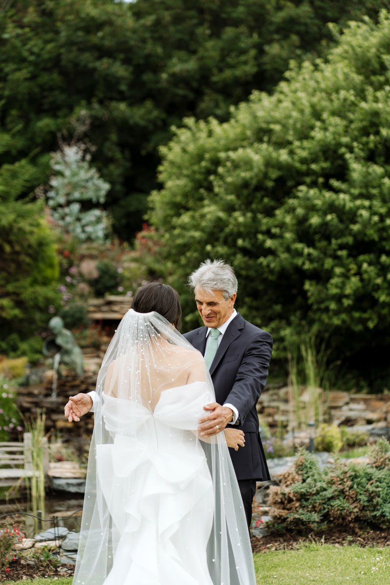 I was obsessed with Hannah’s dress — the detachable skirt added the perfect flowing drama, and cathedral veils are always a favourite of mine to work with.